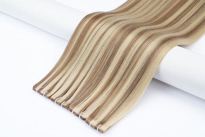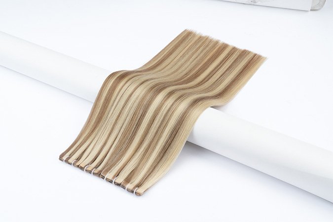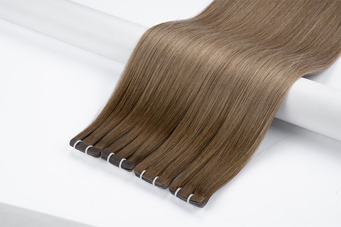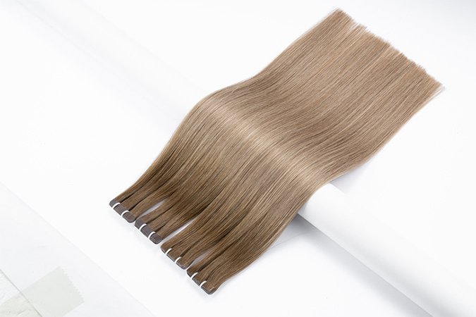 Machine-Injected Tape-Ins are the next evolution in tape-in technology. Unlike traditional wefts where hair is stitched to the adhesive tab, our advanced method injects individual hair strands into a thin, flexible silicone or polyurethane base. This creates a root-mimicking effect that looks like hair growing directly from the scalp. When applied, the bond lies completely flat and is virtually invisible, even in the finest hair, offering a new level of confidence and realism.
